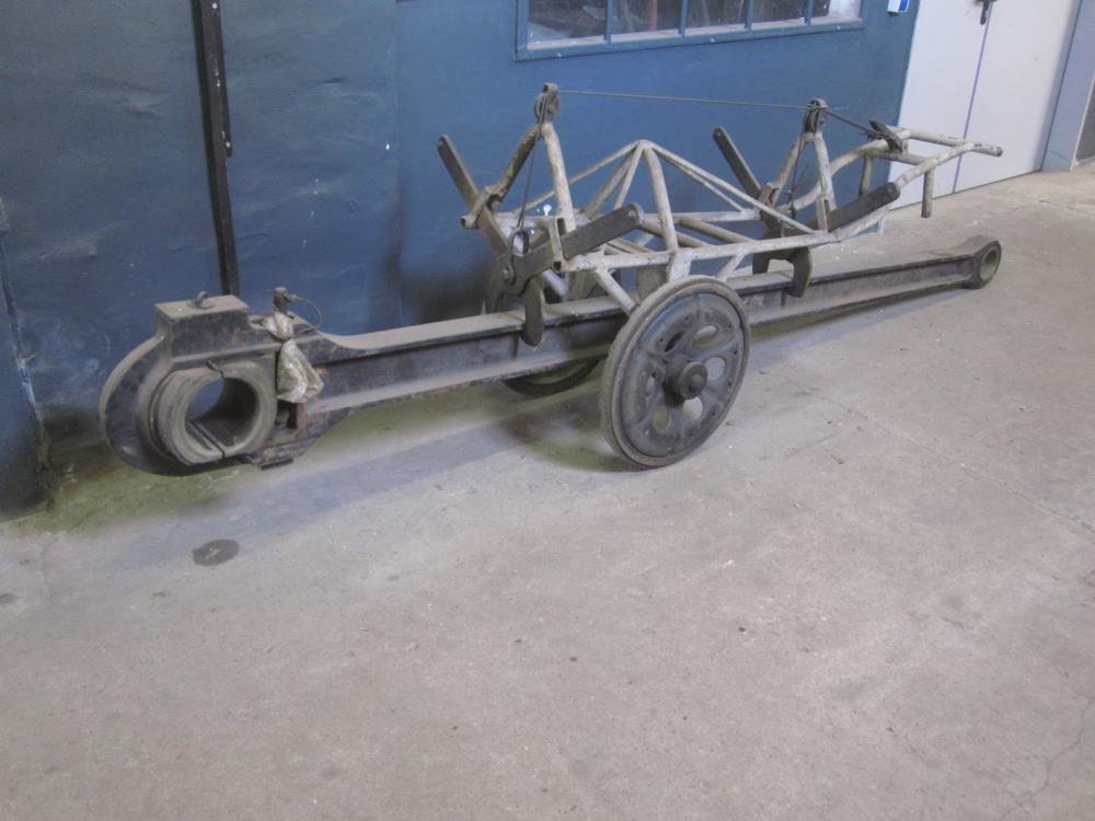 Under the window there is a rod transporter exhibited, in which one of the driving rods of a class 44 steam loco is suspended. This rod weighs about 400 kg or some 880 pounds and is thus far too heavy even for four people to carry it any distance. The design of this carrier however means that just one person can move it without undue exertion, as the weight of the rod is kept nicely in balance.