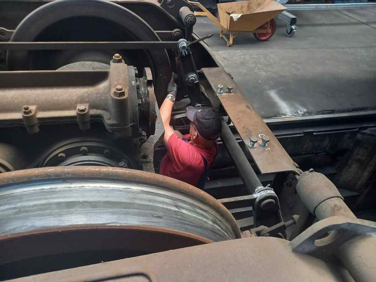 The bogies were also inspected and cleaned. Finally, another task of the day was to remove the old brake pads and prepare the brake system for the installation of new brake pads.