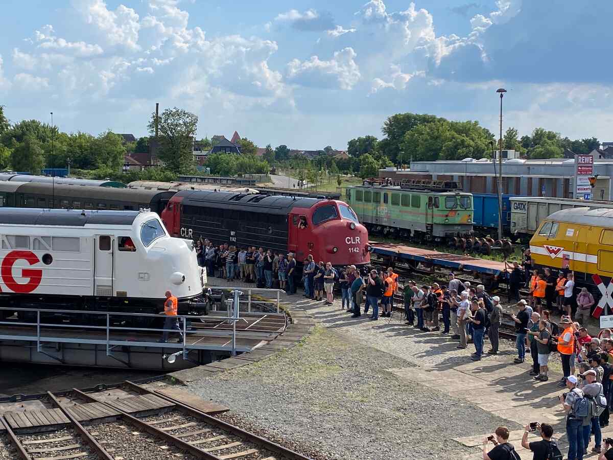 The organisers spared no expense or effort to bring as many of the still operational locomotives as possible to Wittenberge. Three of them came from Denmark, including the first locomotive of the type, which now belongs to the Danish State Railway Museum and is on display in Odense.