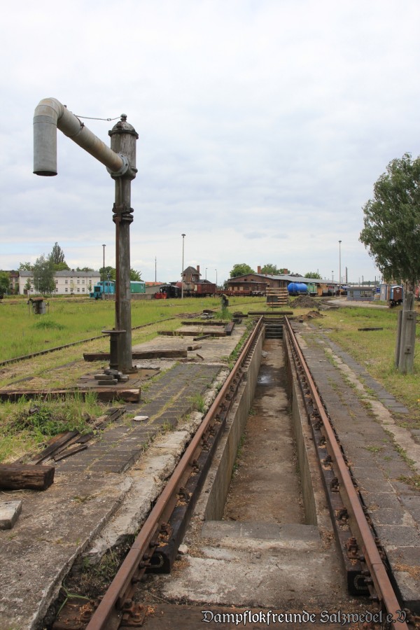 Im Außenbereich wurde der Kanal am Wasserkran wiederhergestellt und befahrbar gemacht, nachdem neue Schwellen eingebaut und die Schienen installiert wurden.