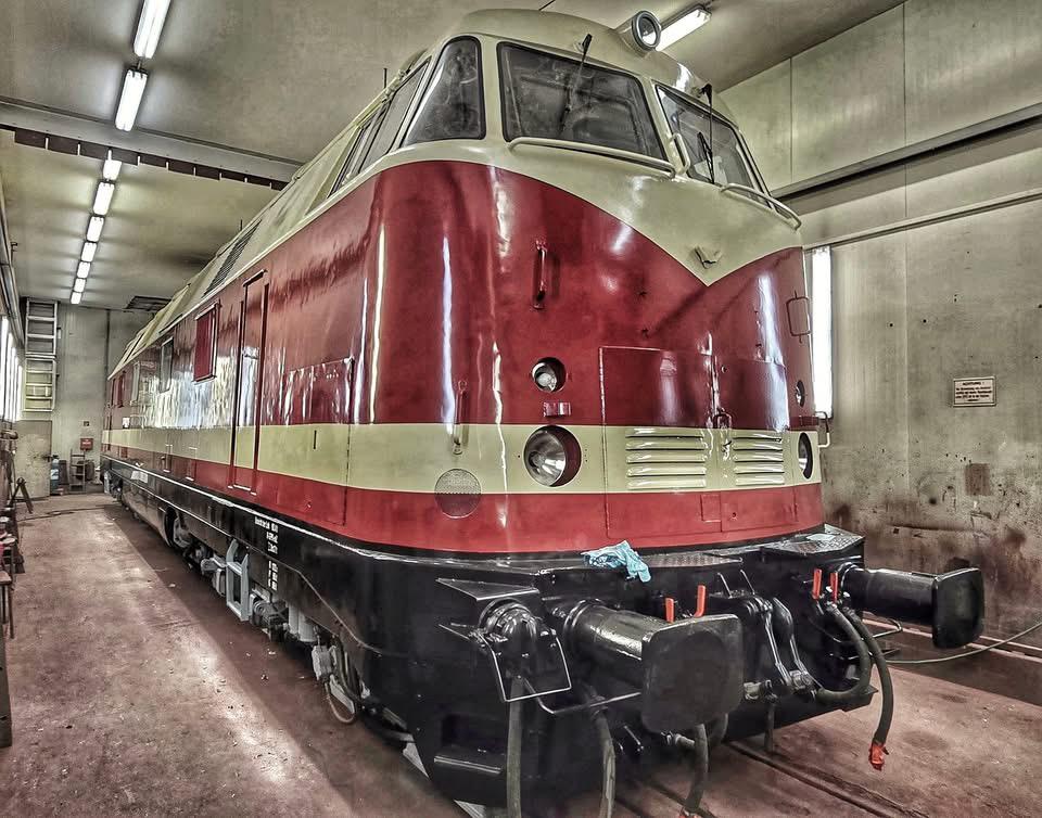 In recent months, it has been thoroughly refurbished by Malowa in Klostermansfeld on the eastern edge of the Harz Mountains. Among other things, the engines, bogies, axles and brakes were repaired during the work. It was also fitted with a modern train control and radio system to enable it to be used on Deutsche Bahn AG lines.