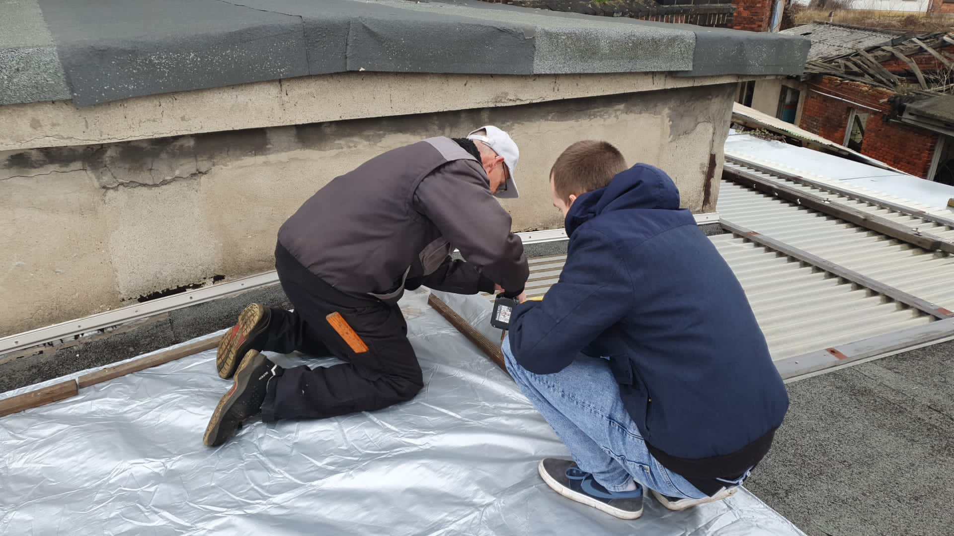 Unfortunately, we occasionally have to deal with unforeseen tasks, as was the case last weekend. During the recent rainy days, it became apparent that the roof of the former emergency power generator hall had started to leak. A tarpaulin was put up as a temporary measure until spring, when the weather will allow new roofing felt to be installed.