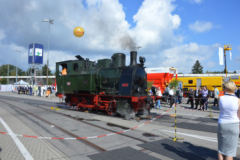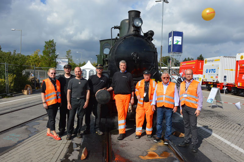 Our little steam locomotive Emma will again be the secret star of the world's largest trade fair for railway technology in Berlin. The fair starts on 20.9. and ends on the following Sunday. During this time Emma will be available for cab rides. Since the small locomotive cannot travel to Berlin on its own, DB Schenker loaded it onto a heavy-duty low-loader and transported it to the trade fair.