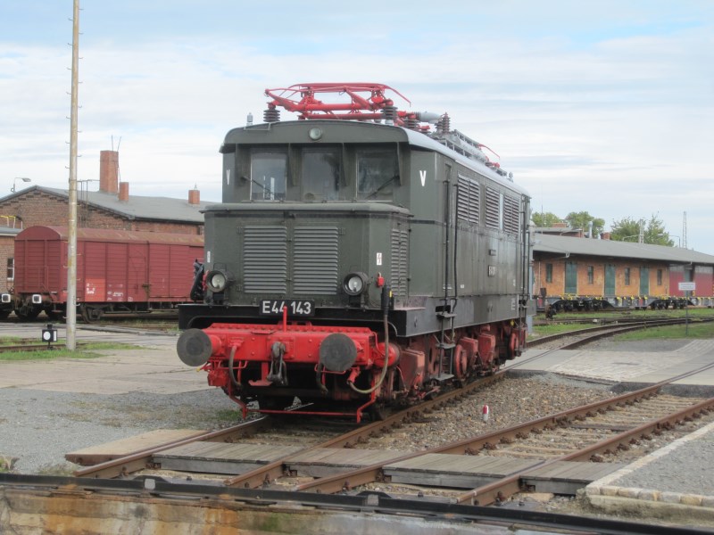 The active members in the Wittenberge locomotive shed are delighted with their first historic electric locomotive. The E44 143 was put on display on 18.9.2015. It is one of a class of 177 locos, which were built between 1932 and the end of the war. The locomotive ended its active days in Schwerin depot, having covered a good 2 million km and has served as an exhibit ever since. It was last to be seen in Weimar.