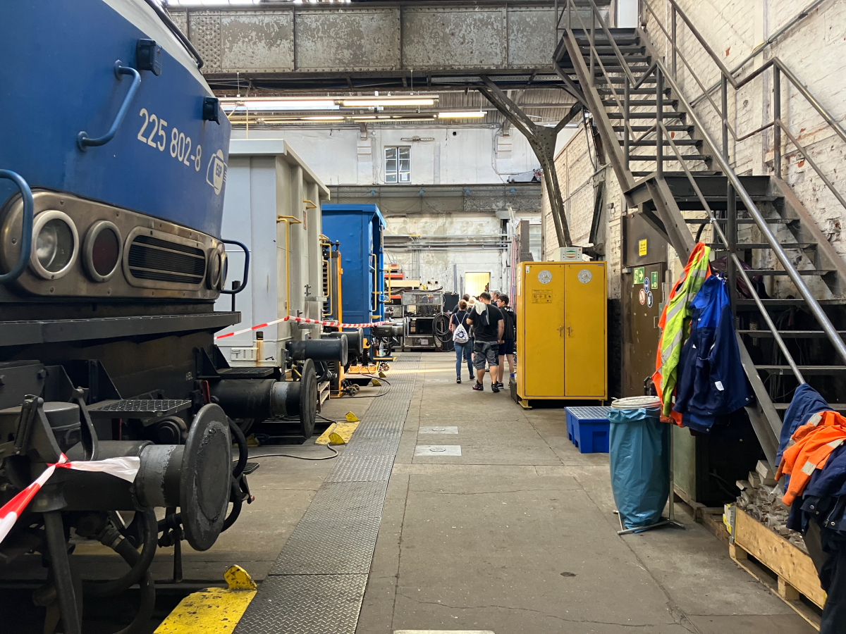 From the diesel fraction, we will probably show you our small locomotives of the Deutsche Reichsbahn and the Osthannoversche Eisenbahn. You will also see the large diesel locomotives V320 and probably 114 774, the latter of which we are still working on during its main inspection. In the meantime, the cardan shafts of the locomotive have been reinstalled and the brake parts have been assembled. So it can run and brake again.