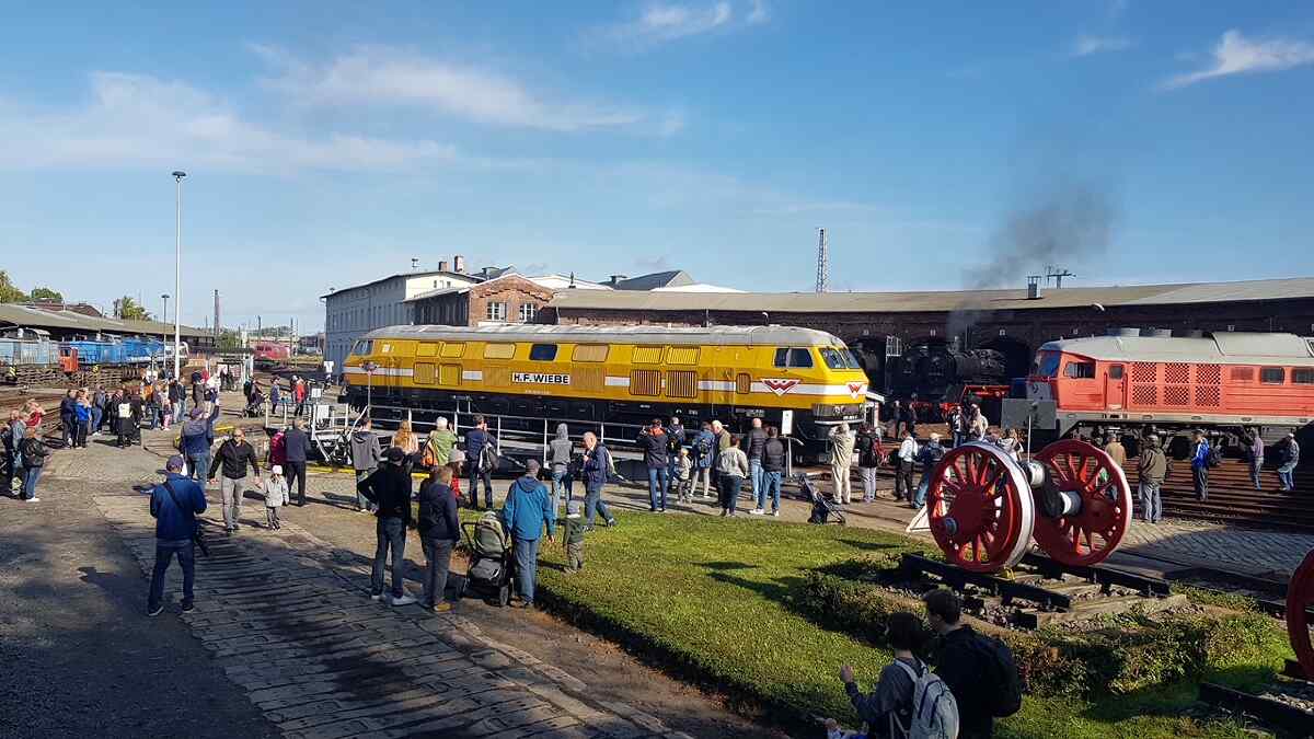 What else happened? We had three events to attend last weekend and that was quite exhausting, not only because of the summery weather. On 9.9, our neighbours, the Schienenfahrzeugwerke Wittenberge, opened their doors to interested visitors. Of course we supported them, because we actually share the grounds of the former Wittenberge railway depot. We also think that we complemented each other well, because the SfW showed modern technology, while we showed historical technology.