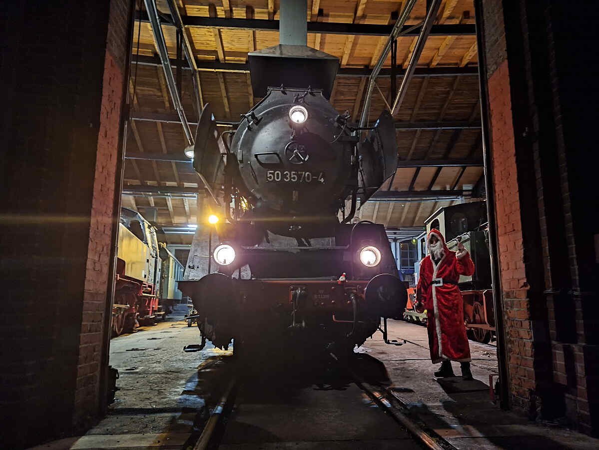 Another year has passed and once again you wonder where the time has gone. In any case, the year was very varied and exciting for us. We organised many great events in 2023 and welcomed many, many guests to our museum. It was great that you visited us. We are now hearing more and more often that guests are recommending us to their friends and acquaintances. Many thanks for that too! This makes us very proud and confirms that we are obviously on the right track. Now it's time for a little Christmas peace and quiet in the museum. Our guest locomotive 86 1333 has arrived safely back in Wittenberge from its last run on the Heidekrautbahn near Berlin and will now spend the next few weeks and months under cover with us.