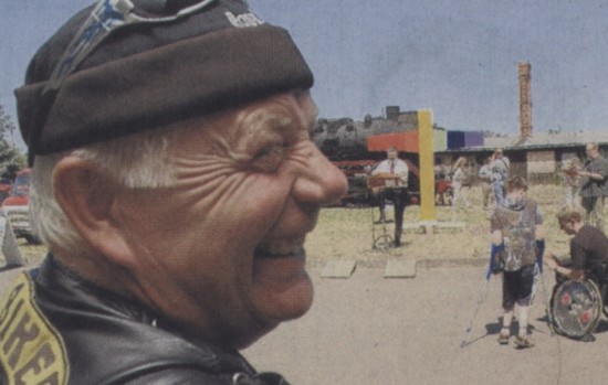 Biker sangen am Sonntag am Lokschuppen brav mit