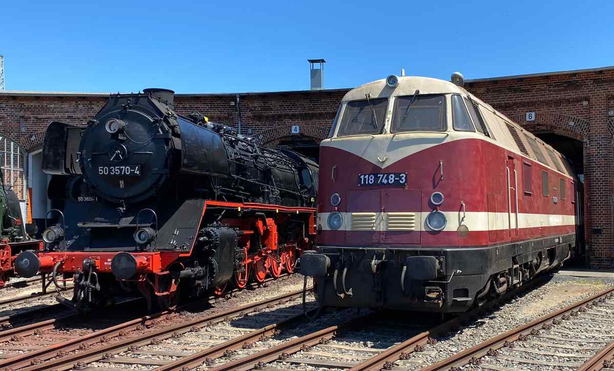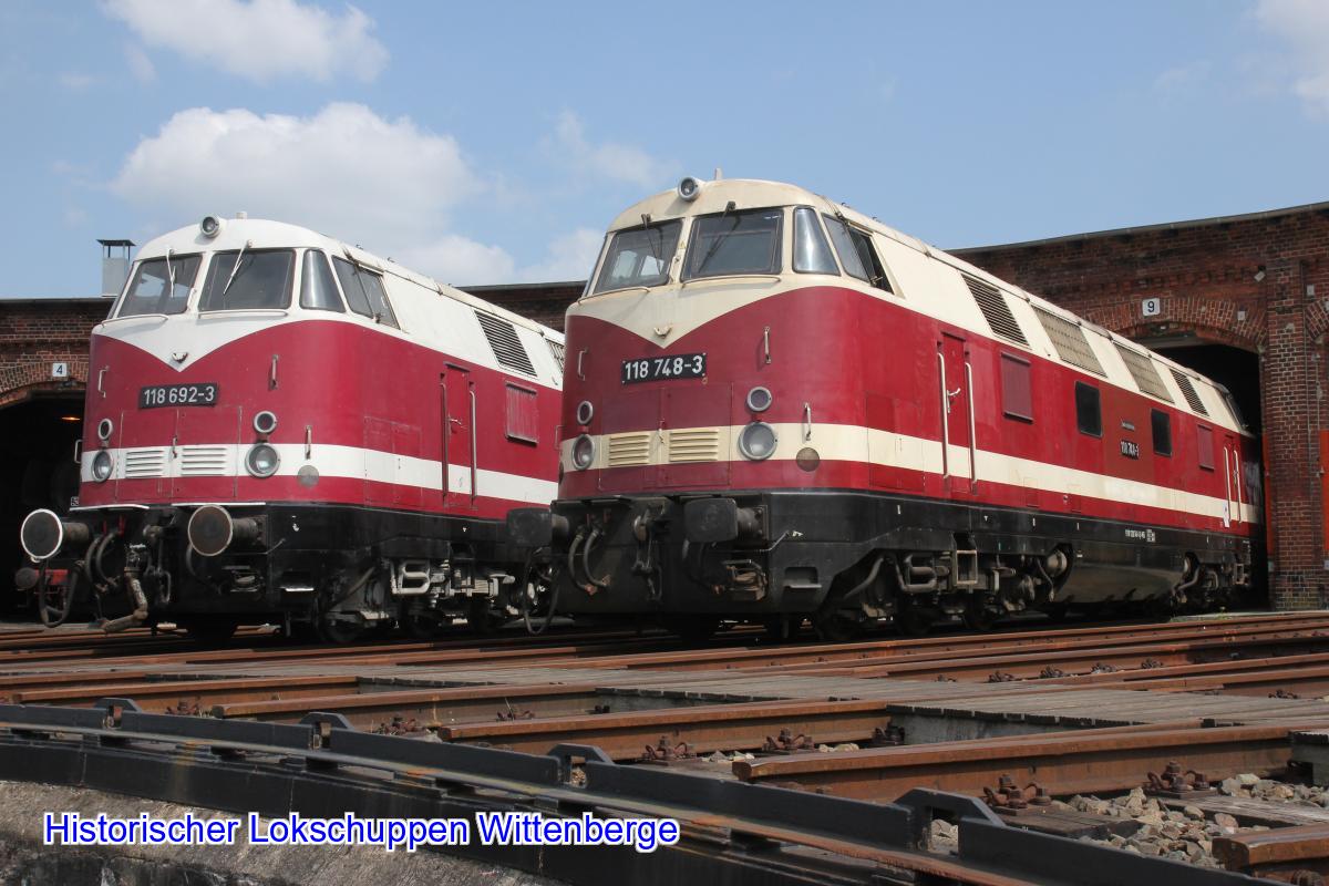 Genau wie die ebenfalls in unserem Museumsbestand befindliche 118 692 ist die 118 748 eine Vertreterin des Traktionswechsels von Dampf- auf Dieselloks bei der Deutschen Reichsbahn Ende der 1960er Jahre. Die "748" war bis 1998 zunächst bei der Deutschen Reichsbahn, später bei der Deutschen Bahn AG in Thüringen stationiert und wurde meist vom Bahnbetriebswerk Erfurt aus eingesetzt. News zum FahrzeugZeitungsartikel zum Fahrzeug | |||||||||||||||||