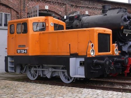 This small shunting loco of type V18 is on long-term loan from the town of Wittenberge. It was last in service in the Wittenberge repair and maintenance workshop, the former RAW Wittenberge, where it bore the number 261 084-5, although it had never actually been allocated a DR number, being delivered when new to a "Peoples' company". The loco is not currently operational and is awaiting restoration.