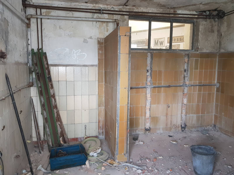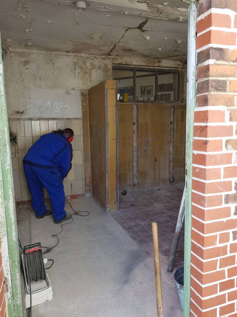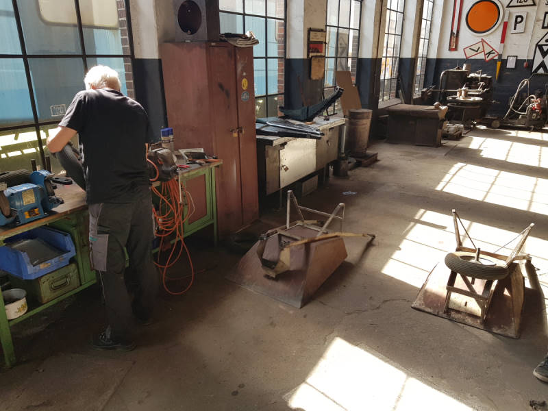 Last Saturday, work was done on several projects at the same time. Let's start with the work in the former toilet facility, which is attached to the outside of the rear of the locomotive shed: Since a reopening to the public was out of the question due to missing inlets and drains and poor access, we decided to gut the premises and convert them as storage for small parts. This makes sense in the medium term, because there are boxes and boxes of screws, nuts, cotter pins and gaskets everywhere, which will now hopefully soon find an orderly place.
