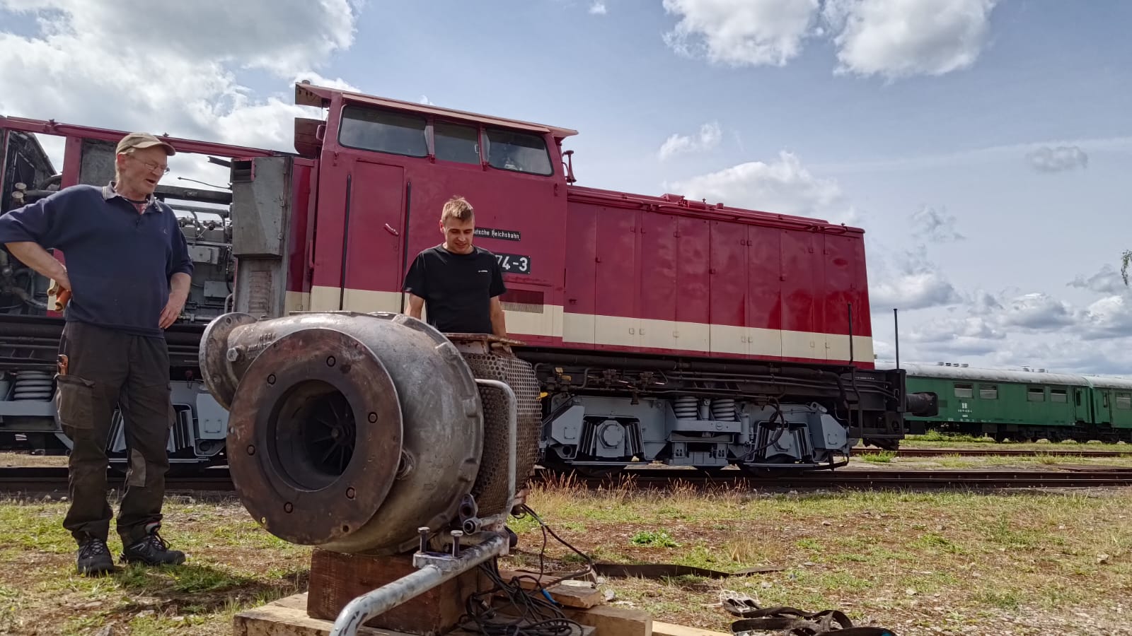 Liebe Freunde unseres Museums, nun ist es mal wieder Zeit, über den aktuellen Stand der Entwicklungen im Historischen Lokschuppen zu berichten. Unsere Diesellok 114 774 wird gerade einer großen Motorrevision unterzogen. Dazu wurde die Auspuffanlage, die Vorratsbehälter für das Kühlmittel und der Turbolader ausgebaut, um sie zu reinigen und zu warten. Im Moment befinden sich die ausgebauten Teile und die Haube des Motorvorbaus im Lokschuppen und können so besser begutachtet und bearbeitet werden. Wir freuen uns umso mehr, dass sich unsere Jugendlichen für das Projekt begeistern konnten. Hier lernen sie "unter Aufsicht erfahrener Kollegen" den Aufbau des Dieselmotors, seine Funktionsweise und die ganzen Kleinigkeiten, die so einen Motor erst rund laufen lassen. Sie freuen sich natürlich, wie wir alle, auf den Tag, an dem sich die Lok wieder aus eigener Kraft bewegen wird. Das wird noch ein bisschen dauern, aber wir sind zuversichtlich.