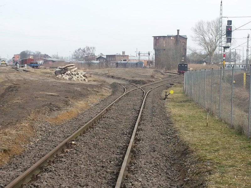 Dieses Bild zeigt das neue Gleis in Richtung Geländespitze. Und hier sehen Sie die Gegenrichtung. Am Zaun wartet schon Lok 0604 darauf, endlich das neue Gleis befahren zu können.