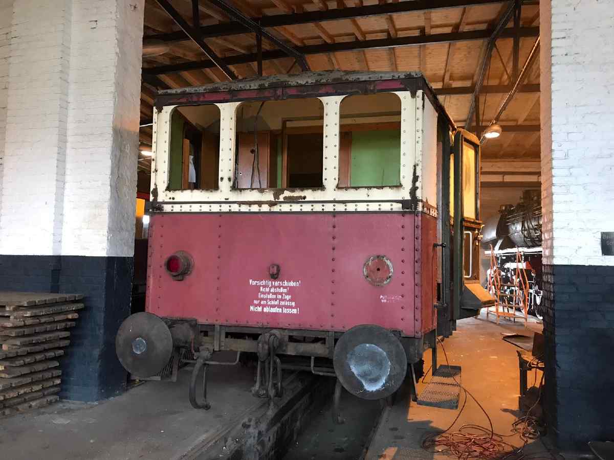 Erfreuliches gibt es sonst noch zu berichten. Wie Sie vielleicht verfolgt haben, ist der Verein seit ungefähr drei Jahren im Besitz des Beiwagen 190 851. Er ist ein alter Prignitzer, denn er wurde jahrzehntelang auf den Nebenbahnen rund um Perleberg und damit in unserer nächsten Nachbarschaft eingesetzt. Nach Stilllegung der Strecken wurde er nach Berlin umbeheimatet und diente als Dienstfahrzeug dem (Ost-)Berliner Bauamt bzw. der Deutschen Reichsbahn. Zuletzt wurde er in einem Lager des Berliner Museums für Verkehr und Technik aufbewahrt. Freundlicherweise hat uns dieses Museum das Fahrzeug überlassen. Wir erinnern uns, dass er Mitte Dezember 2019 mit verblichenem Lack, aber immerhin noch auf eigenen Rädern in Wittenberge ankam.