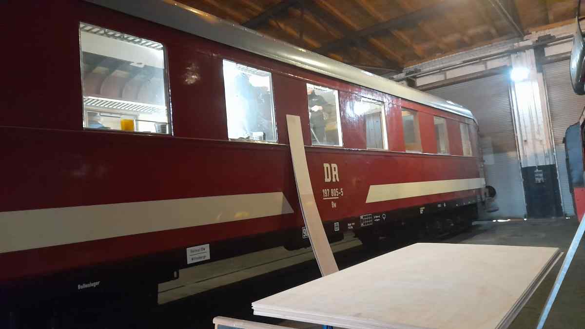 Die sichtbaren Fortschritte an unserem Beiwagen 197 805 in Form einer neuen Lackierung erinnern an die Arbeiten an unseren Fahrzeugen.